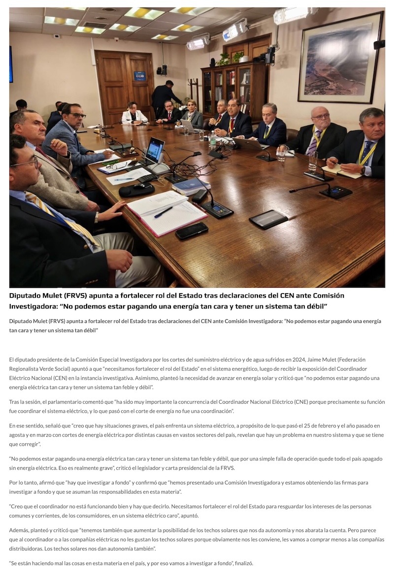 Diputado Mulet (FRVS) apunta a fortalecer rol del Estado tras declaraciones del CEN ante Comisión Investigadora: "No podemos estar pagando una energía tan cara y tener un sistema tan débil". - (subelaradio.cl)