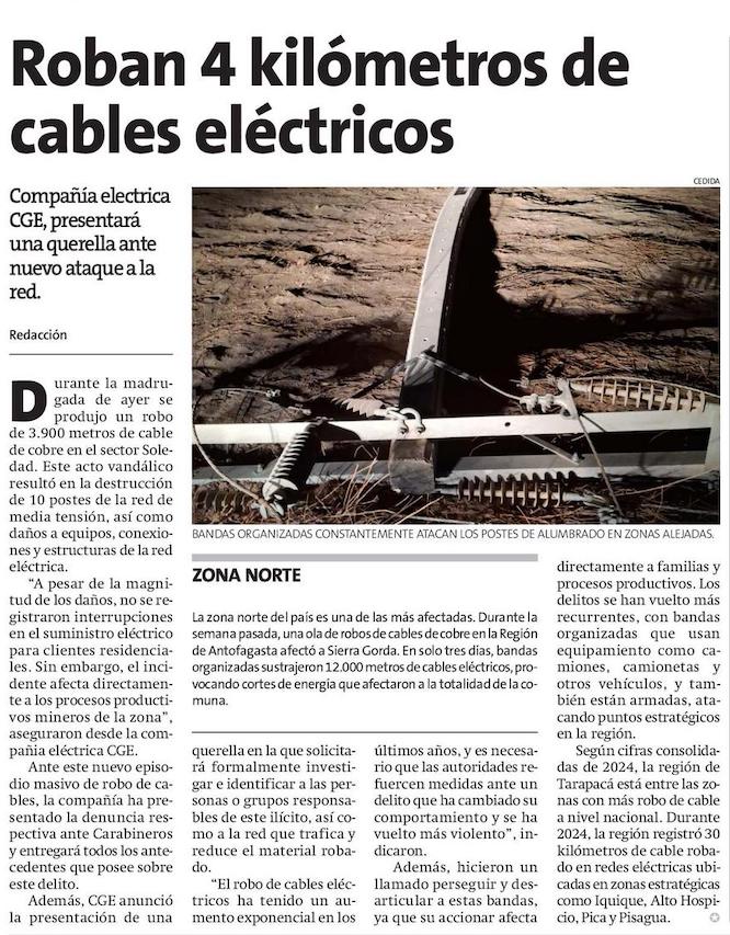 Compañía electrica CGE, presentará una querella ante nuevo ataque a la red.