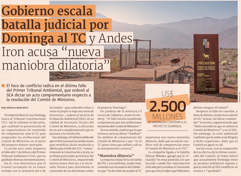 Escala batalla por Dominga: Gobierno presenta requerimiento ante el TC por contienda de competencias con justicia ambiental - (Pulso)