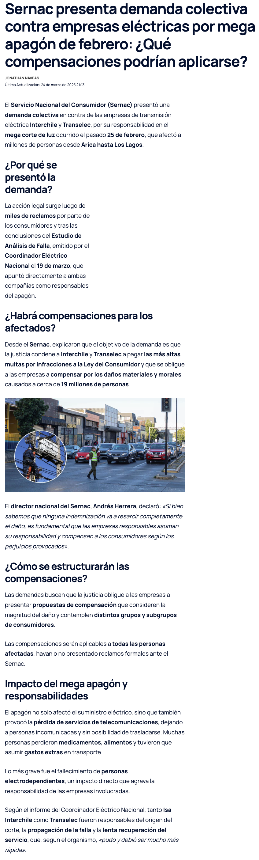 Apagón del 25 de febrero: Sernac presenta demanda colectiva contra dos empresas eléctricas - (cnnchile.com)