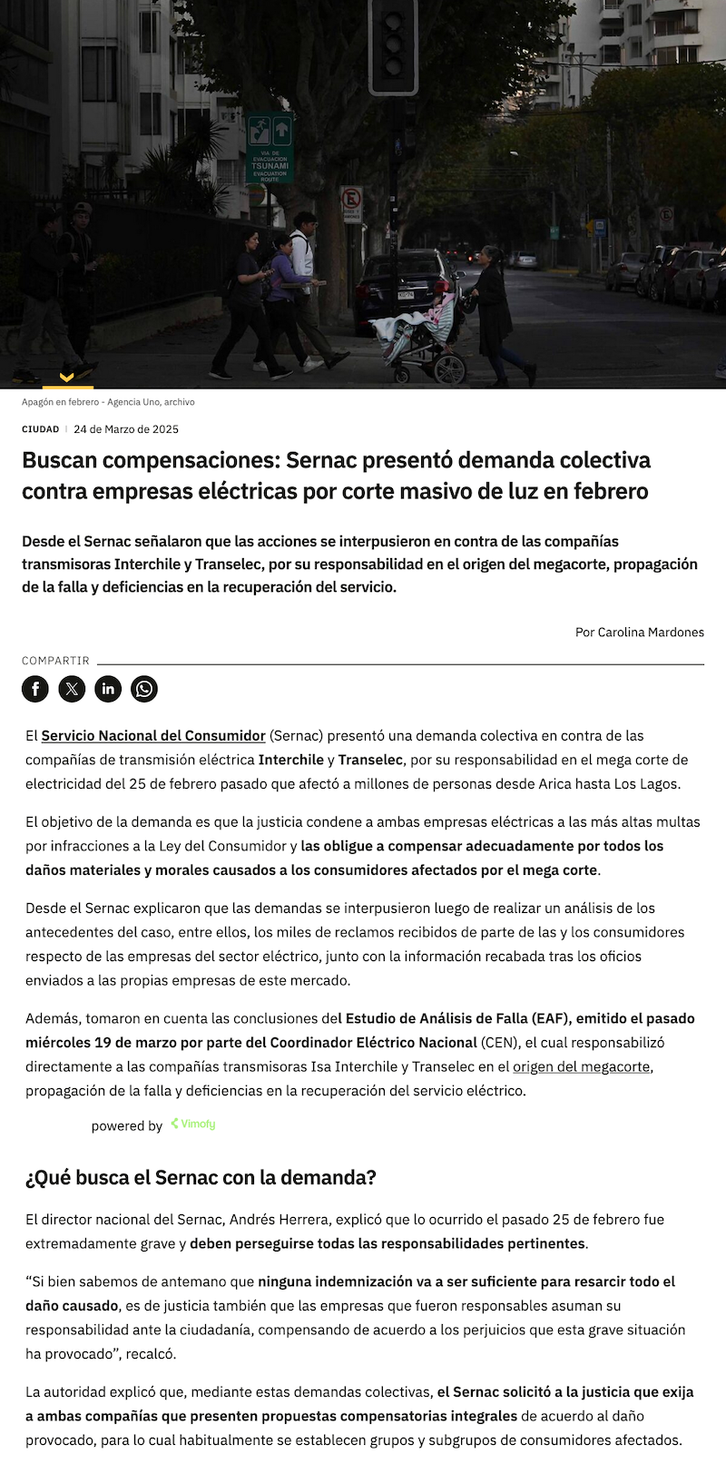 SERNAC demanda colectivamente a empresas eléctricas causantes del mega apagón de febrero pasado - (ceinoticias.cl)