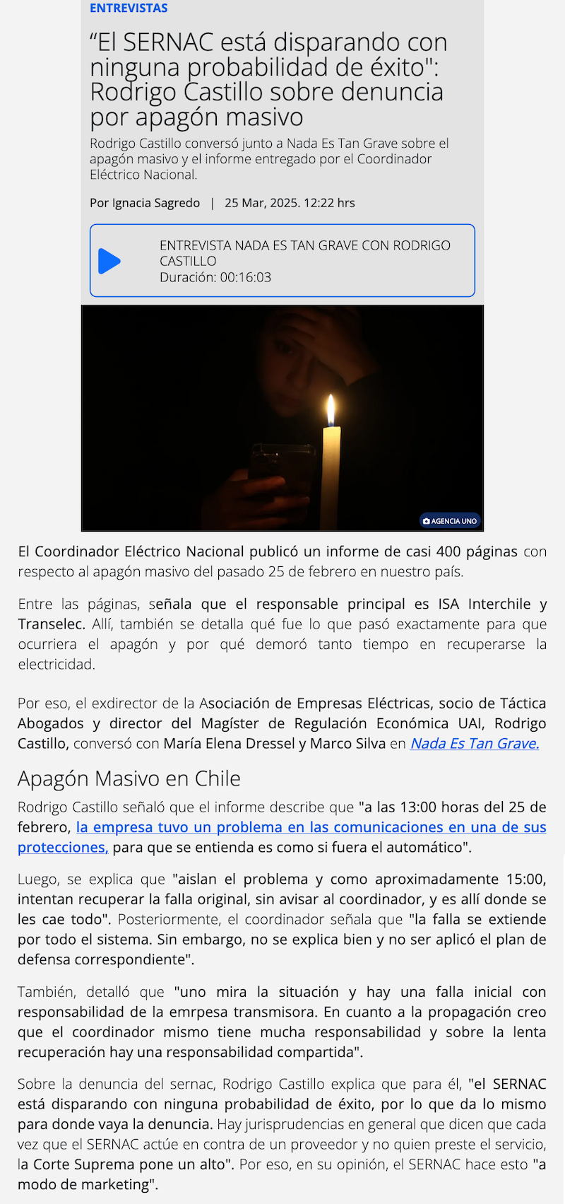SERNAC demanda colectivamente a empresas eléctricas causantes del mega apagón de febrero pasado - (ceinoticias.cl)