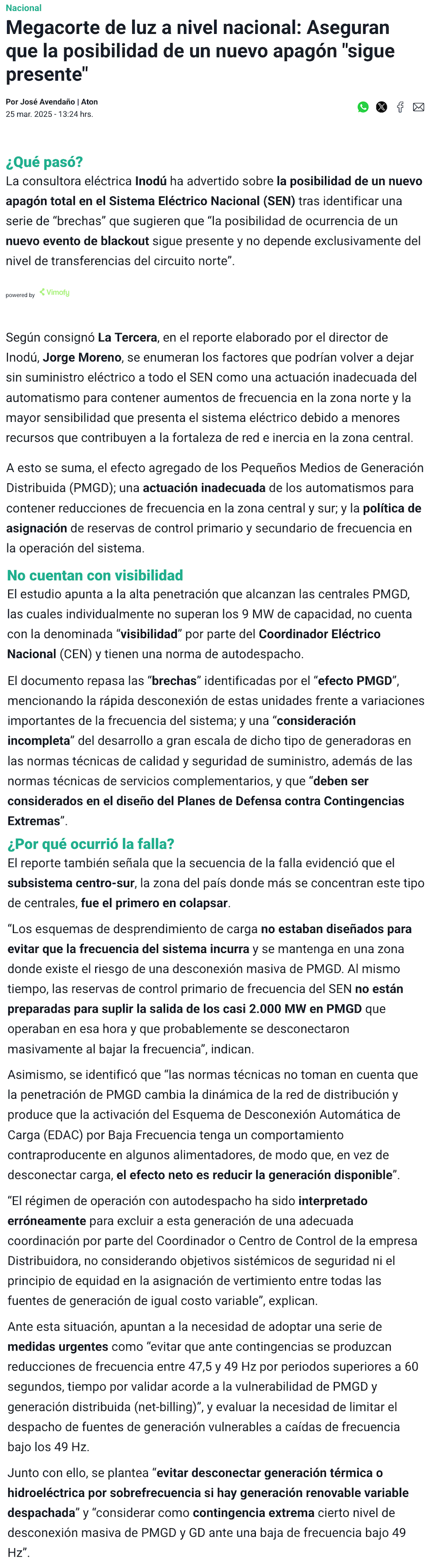 Informe advierte posibilidad de nuevo megacorte en el Sistema Eléctrico Nacional - (chicureohoy.cl)