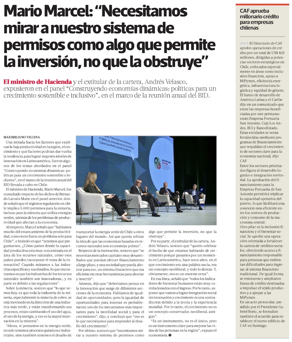 En la segunda jornada del BID, Marcel y Velasco realzan el rol de la innovación en el crecimiento - (Diario Financiero)
