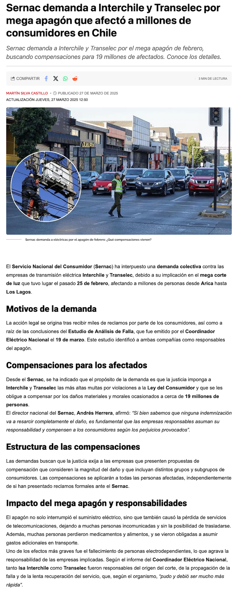Sernac Demanda a Empresas Eléctricas por Megacorte: Responsabilidad Extracontractual Revelada - (reportediario.cl)