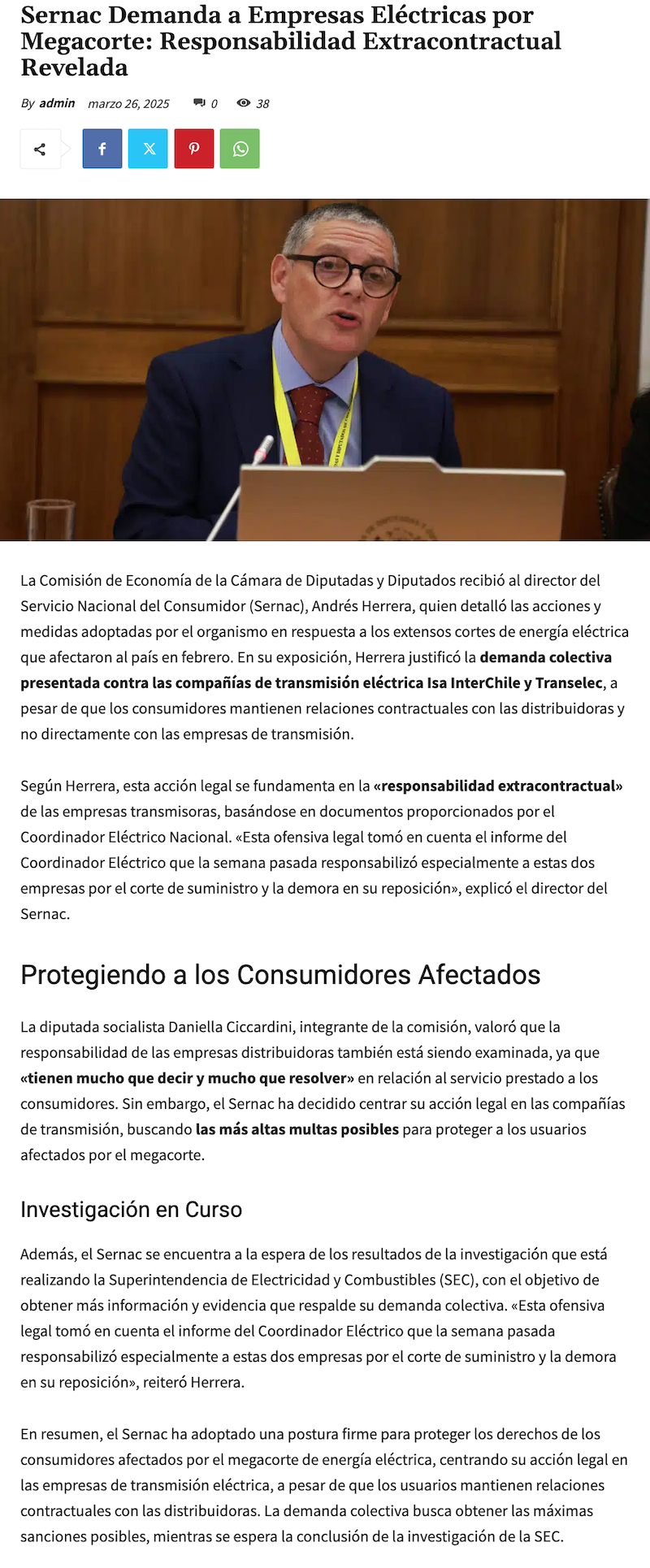 Sernac demanda a Interchile y Transelec por mega apagón que afectó a millones de consumidores en Chile - (duplos.cl)
