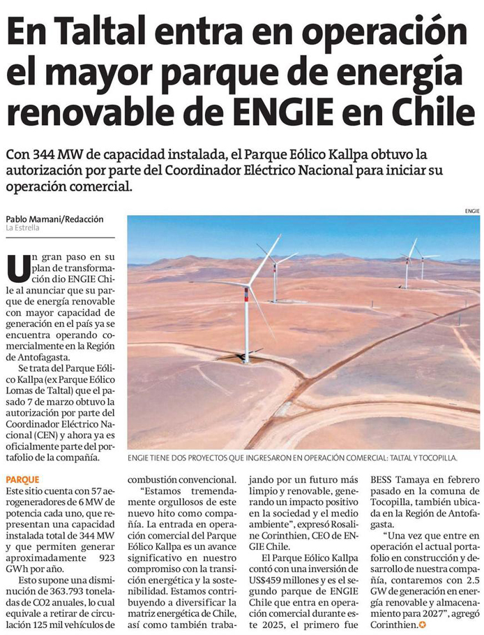 Entra en Operación el Mayor Parque de Energía Renovable de ENGIE en Chile - (region2)