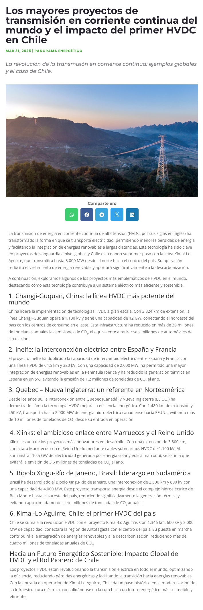 Los principales proyectos de transmisión de corriente continua en el mundo y cómo será el caso de Chile - (portalminero)