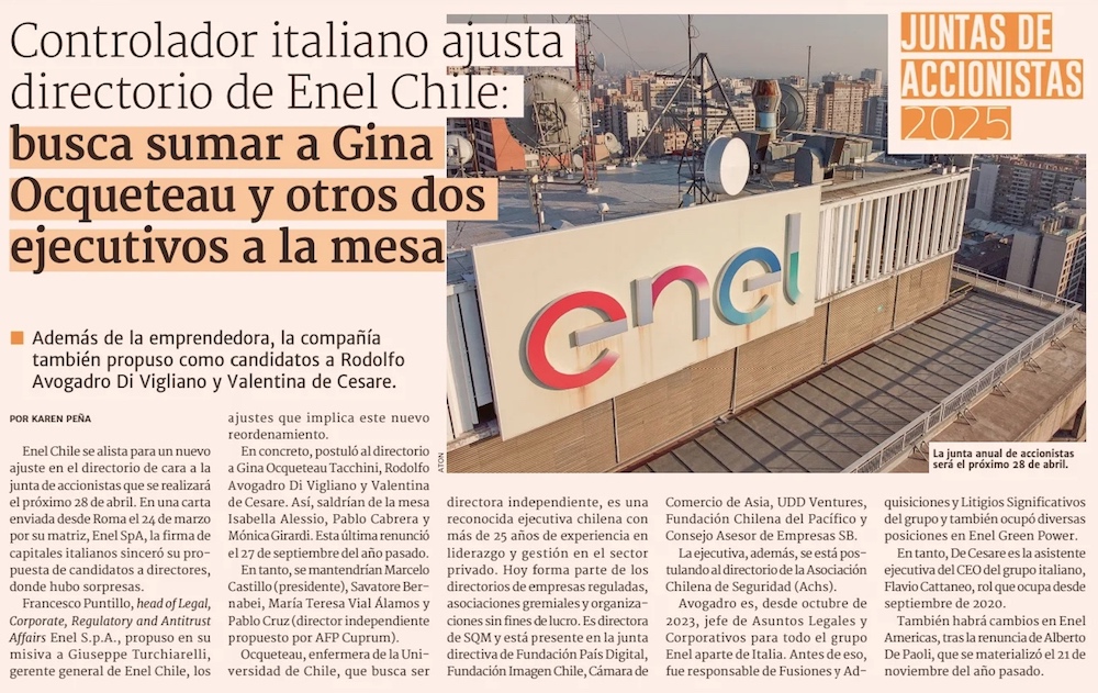 Gina Ocqueteau, la directora de SQM que se sumará al directorio de Enel Chile en medio de cambios a la mesa - (Pulso)