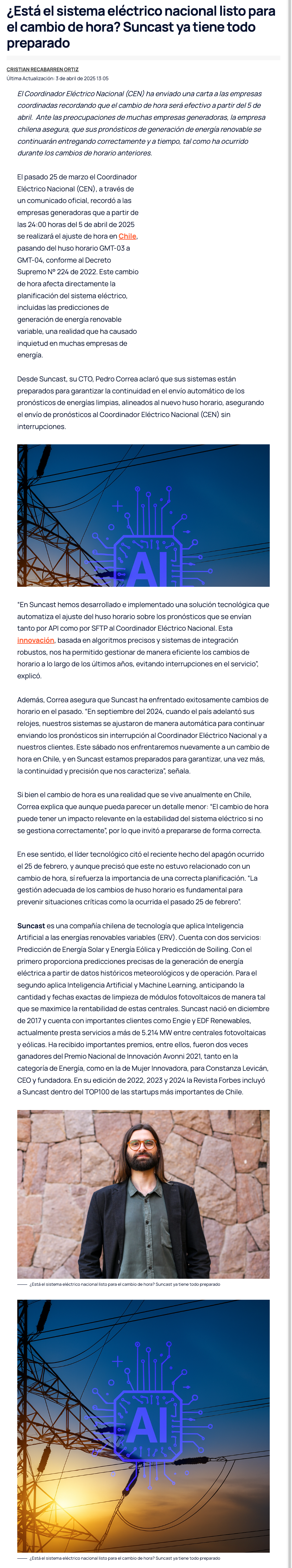 ¿Está el sistema eléctrico nacional listo para el cambio de hora? Suncast ya tiene todo preparado - (portalinnova.cl)