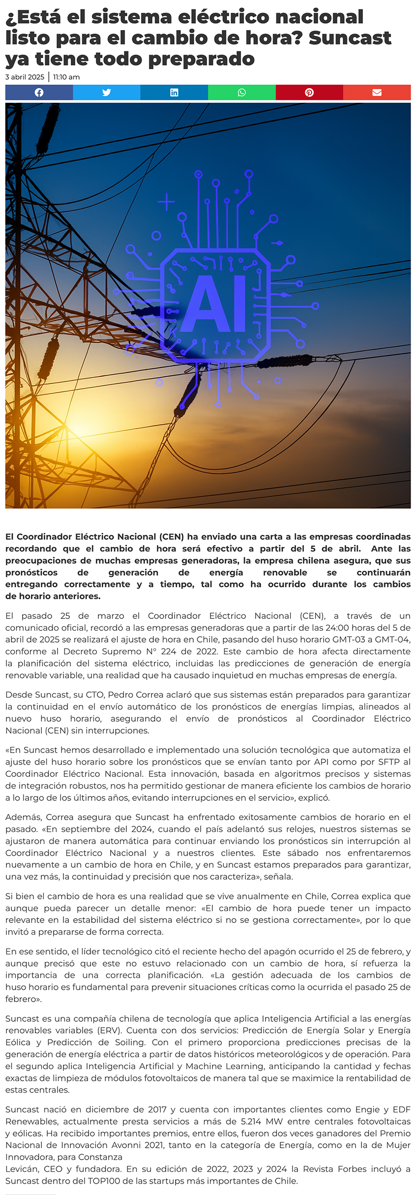¿Está el sistema eléctrico nacional listo para el cambio de hora? Suncast ya tiene todo preparado - (portalinnova.cl)