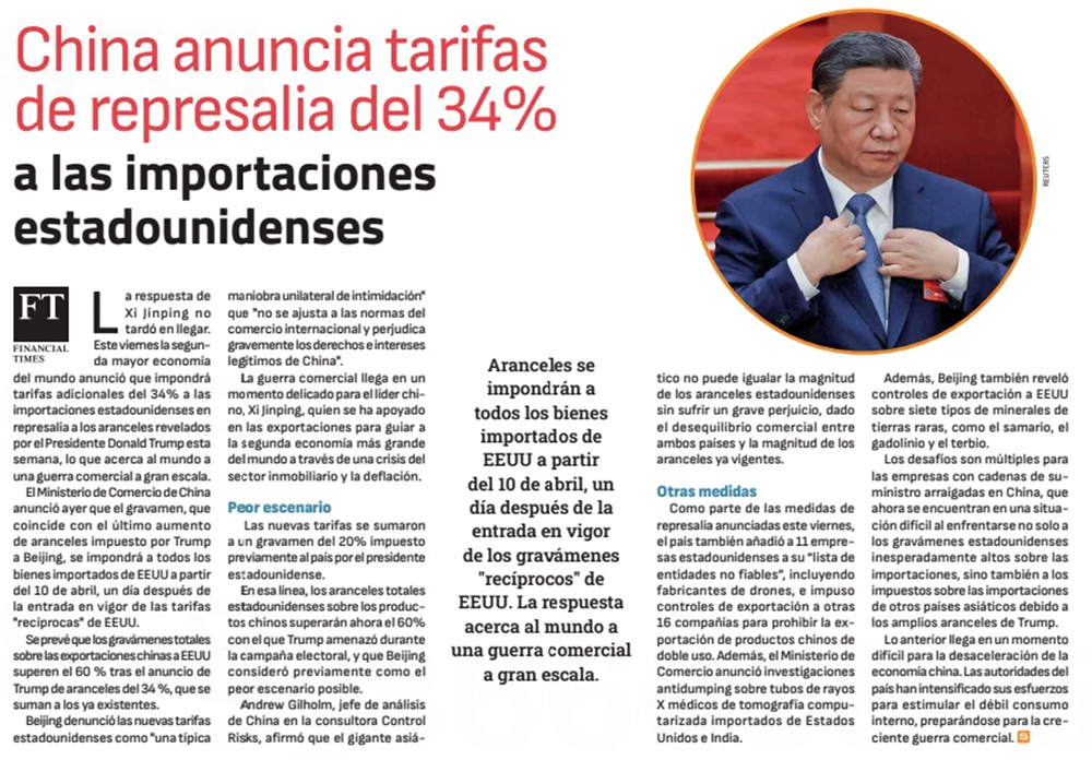 China impone represalias arancelarias a EE.UU. y profundiza el pánico en los mercados mundiales - (Pulso)