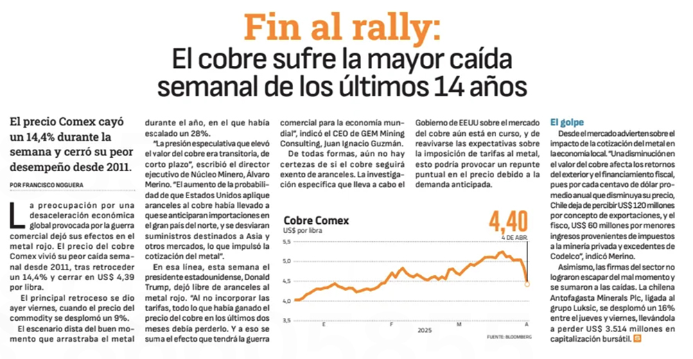 “El precio del cobre podría encontrar un nivel de soporte técnico en torno a los US$ 3,90 la libra” - (Diario Financiero)