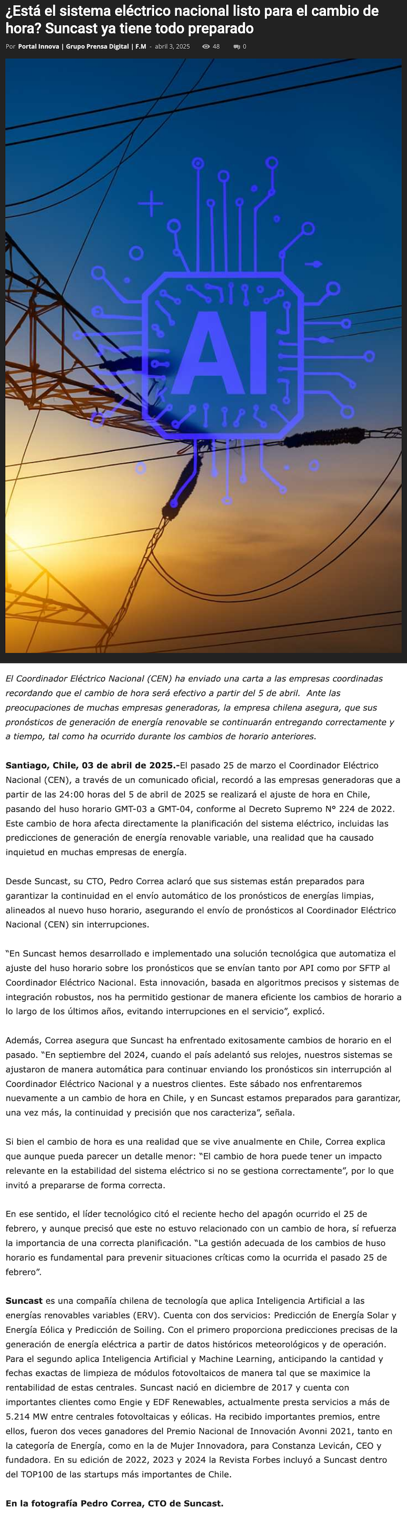 ¿Está el sistema eléctrico nacional listo para el cambio de hora? - (infogate.cl)