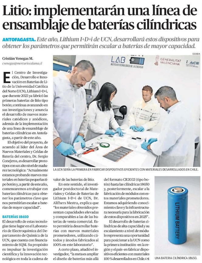 Litio: implementarán una línea de ensamblaje de baterías cilíndricas - (El Mercurio de Calama)