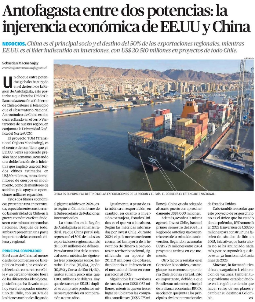Excancilleres alertan de implicancias en RR.EE. de centro astronómico chino en Antofagasta - (El Mercurio de Santiago)