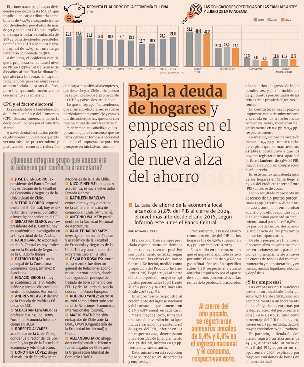 La tasa de ahorro de la economía chilena crece y la deuda de los hogares y empresas cae en 2024 - (Pulso)