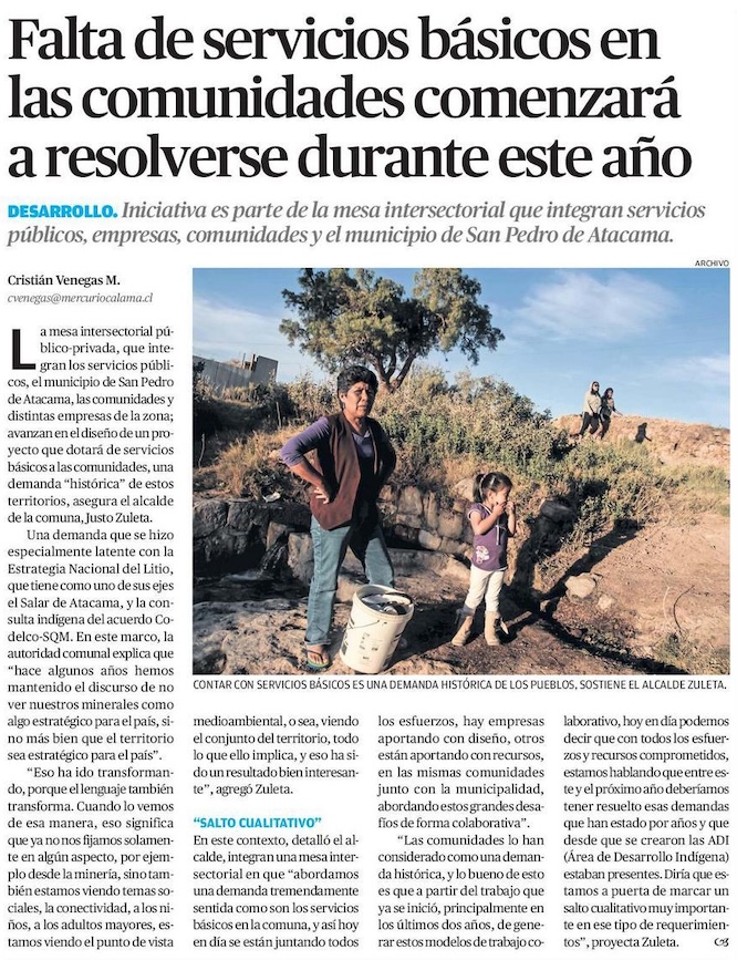 Falta de servicios básicos en las comunidades comenzará a resolverse durante este año - (El Mercurio de Antofagasta)