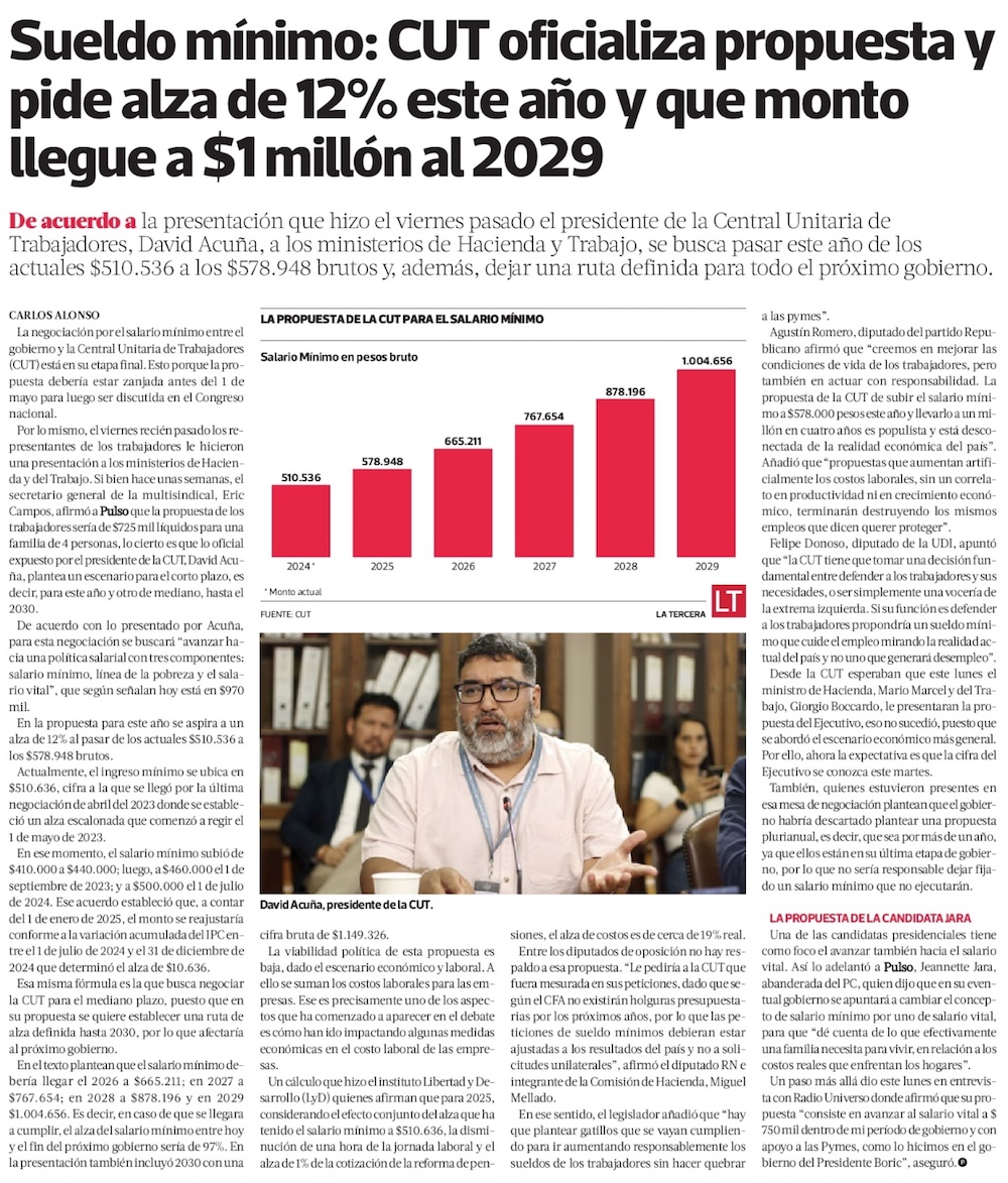 Mayores costos laborales por regulaciones dificultan espacio para nuevos aumentos del salario mínimo - (El Mercurio de Santiago)
