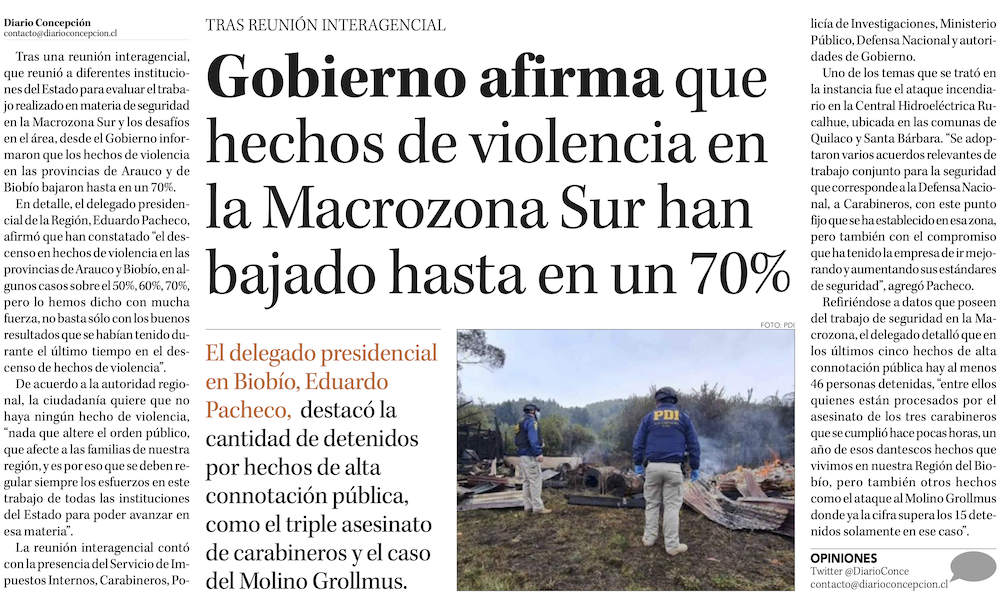 Destacan la detención de 45 sujetos por hechos violentos y de connotación en Biobío y Arauco - (El Sur)