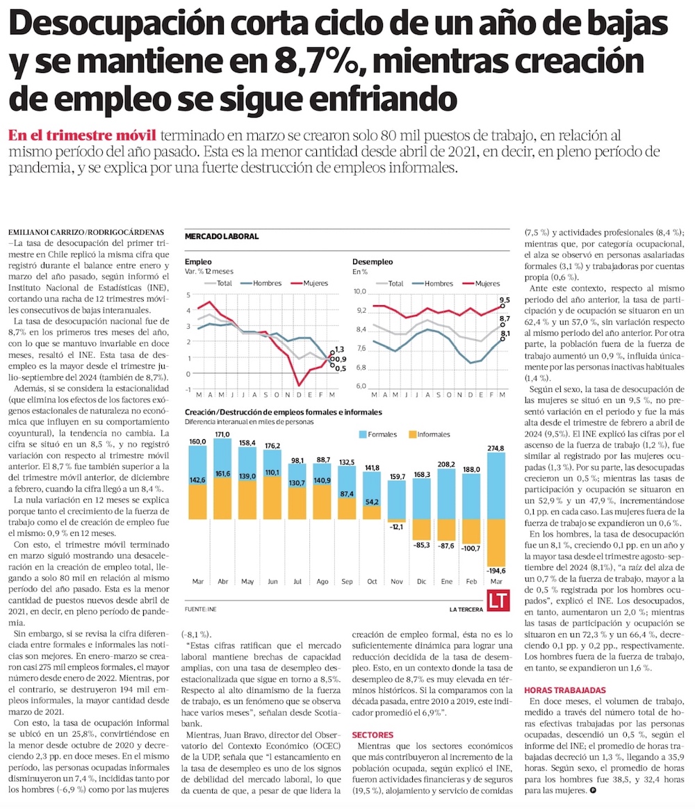 En medio de un desempleo cercano a 9%, destaca aporte de grandes empresas y otra baja de la informalidad - (Diario Financiero)