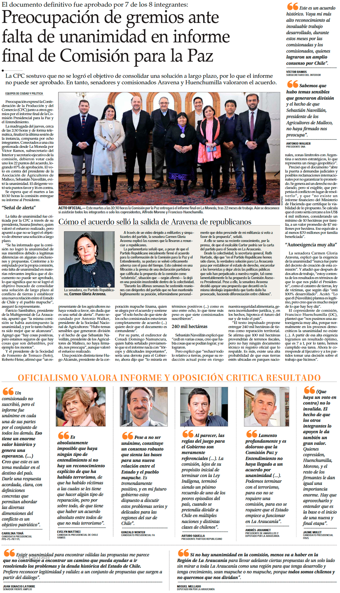 Aunque sin unanimidad, comisión por la Paz y el Entendimiento llegó a acuerdo - (Diario Financiero)