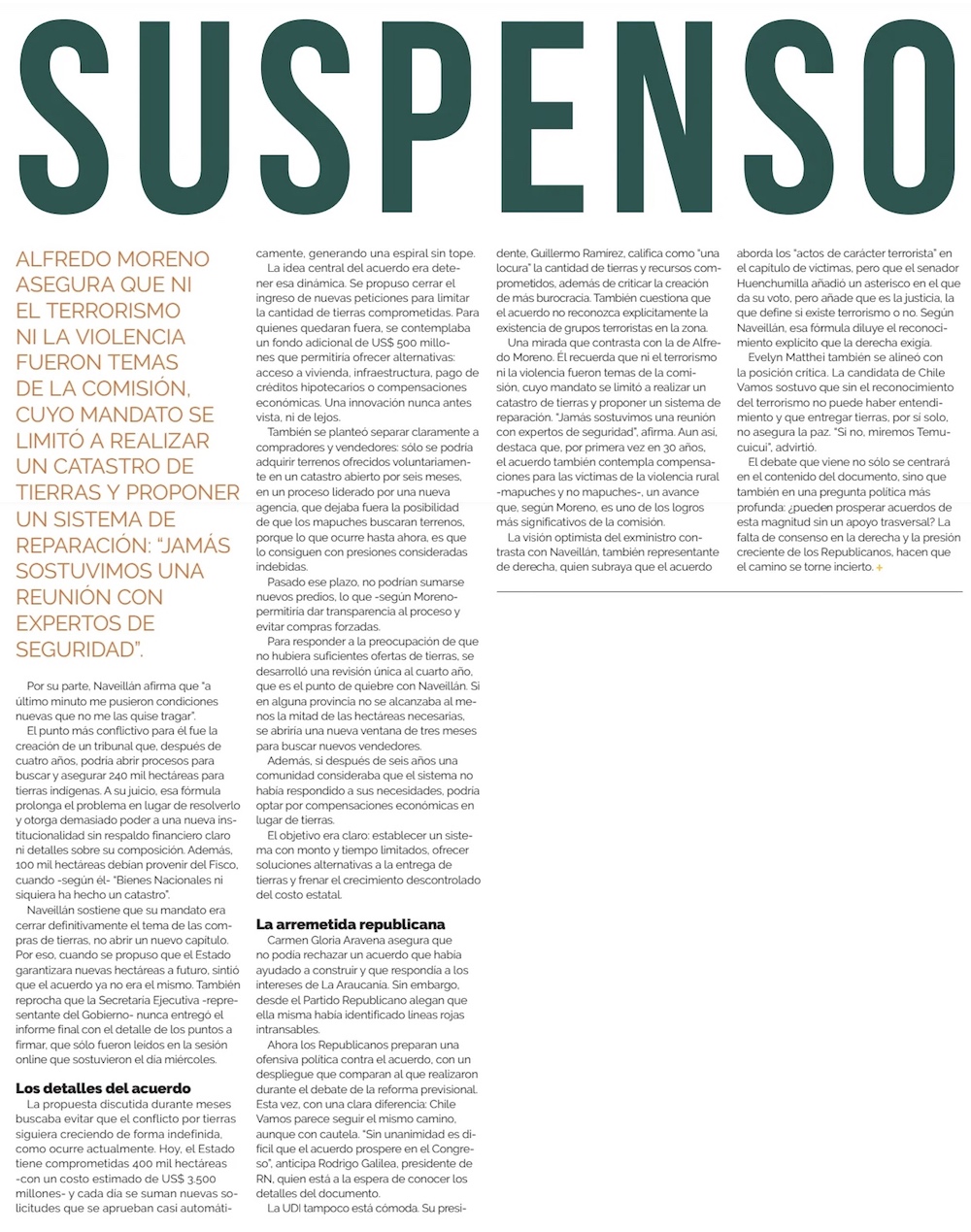Comisión de Paz no pudo tener a tiempo un catastro de las tierras entregadas a indígenas - (El Mercurio de Santiago)
