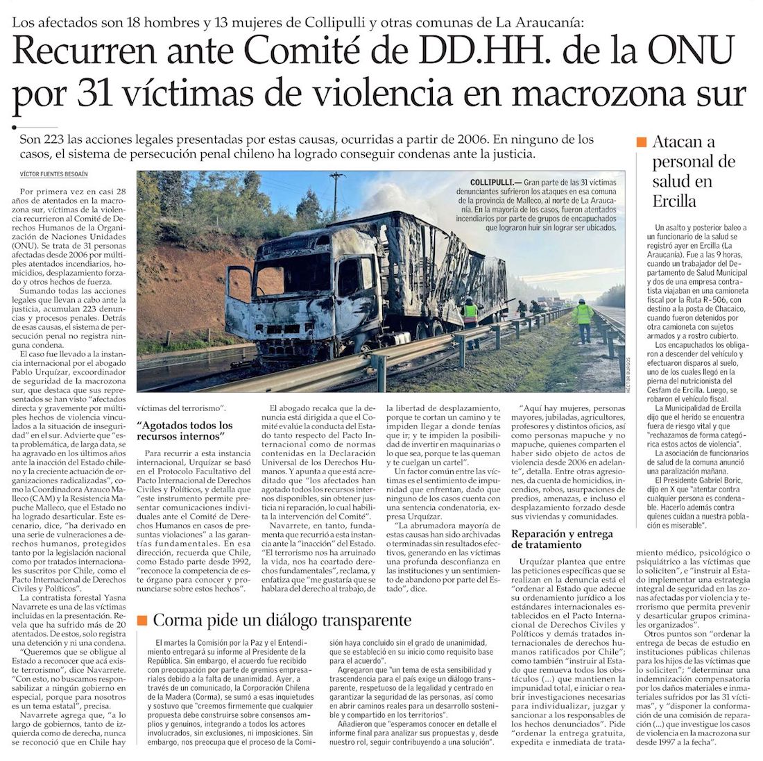 Comisión de Paz no pudo tener a tiempo un catastro de las tierras entregadas a indígenas - (El Mercurio de Santiago)