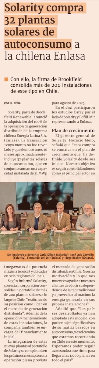 Solarity compra 32 plantas solares de Enlasa - (La Segunda)