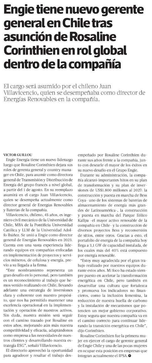 Cambios en Engie: ingeniero Juan Villavicencio asumirá gerencia general de Energía - (soyantofagasta)