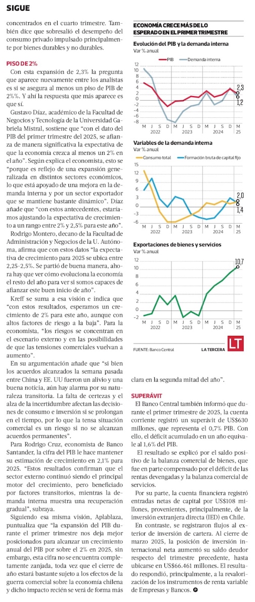 PIB sube más de lo previsto en primer trimestre, pero mercado muestra cautela por impacto de guerra comercial - (Diario Financiero)