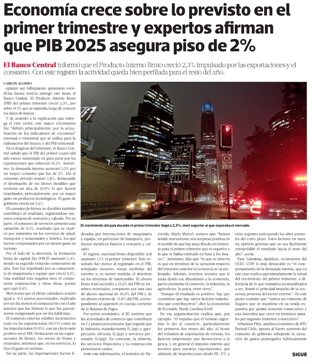 PIB sube más de lo previsto en primer trimestre, pero mercado muestra cautela por impacto de guerra comercial - (Diario Financiero)