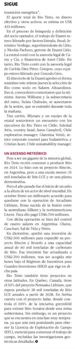 Rio Tinto surge como rival de SQM, tras adjudicarse otro proyecto de litio en Chile - (El Mercurio de Santiago)