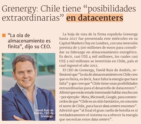 Firma española invertirá US$ 4.000 millones en Chile - (El Mercurio de Santiago)