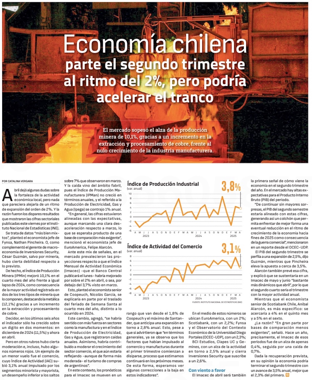 Tras cifras sectoriales, economistas esperan un Imacec de hasta un 2,8% para abril - (Pulso)