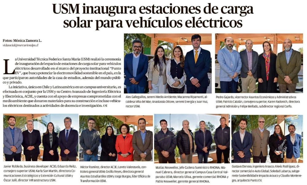 Estación solar en la USM permite cargar hasta seis vehículos eléctricos de forma simultánea - (El Mercurio de Valparaíso)