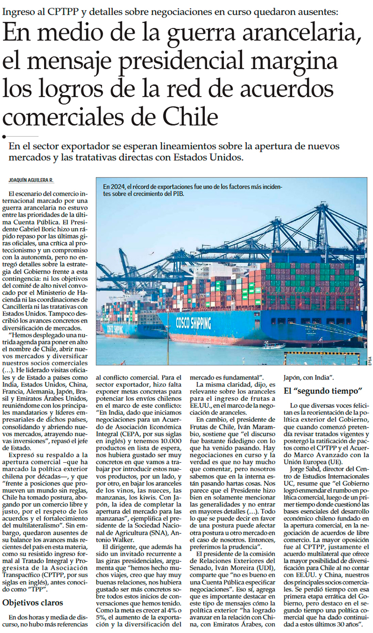 Discurso destaca importancia del crecimiento, pero carece de propuestas para reactivación - (El Mercurio de Santiago)