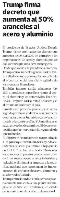 Trump formaliza aumento de aranceles hasta 50% a importaciones de acero y aluminio - (Diario Financiero)