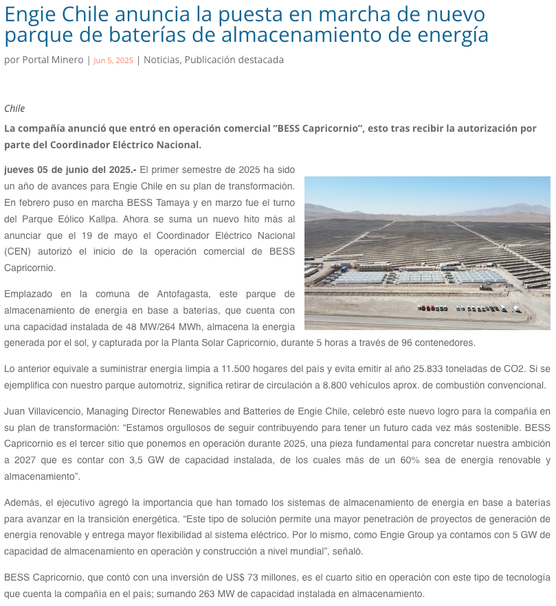 Engie Chile lanza BESS Capricornio en Antofagasta: Nuevo sistema de almacenamiento de 264 MWh promueve futuro sostenible - (redimin)