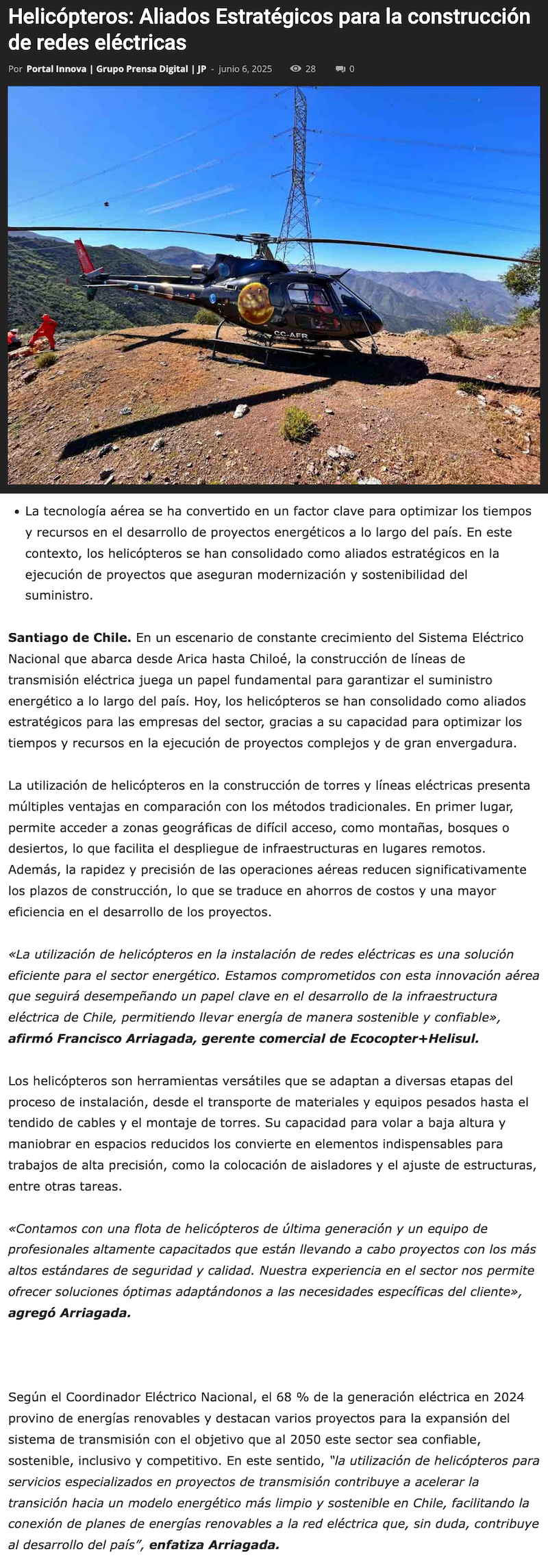 Helicópteros: aliados estratégicos y eficientes en la construcción de redes eléctricas en zonas de difícil acceso - (redimin)