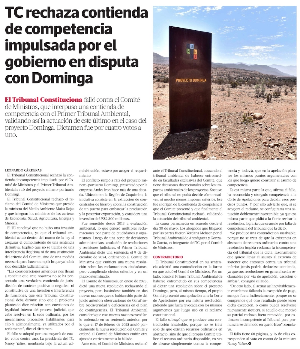 TC rechaza contienda de competencia entre el SEA y el Primer Tribunal Ambiental por Dominga - (Diario Financiero)