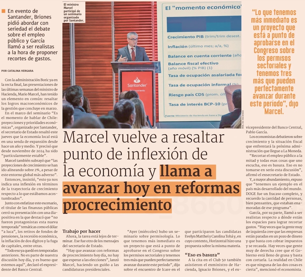 Marcel resalta el rol del Estado para impulsar las inversiones y las condiciones que tiene Chile para crecer más - (Pulso)