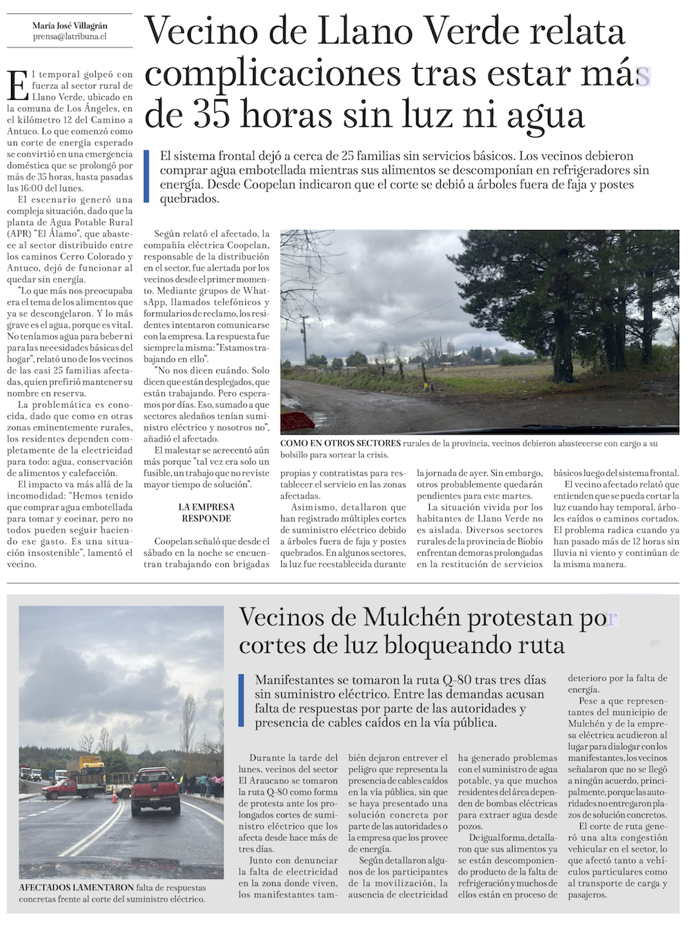 Cortes eléctricos se extienden por 48 horas y denuncian lenta reposición - (El Sur)