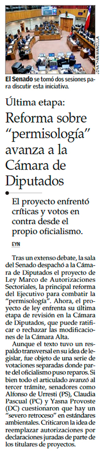 Senado aprueba proyecto de permisos sectoriales y vuelve a la Cámara para su último trámite - (Pulso)