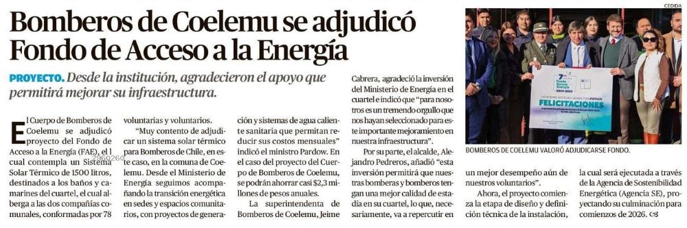 Bomberos de Coelemu se adjudicó Fondo de Acceso a la Energía - (La Discusión)
