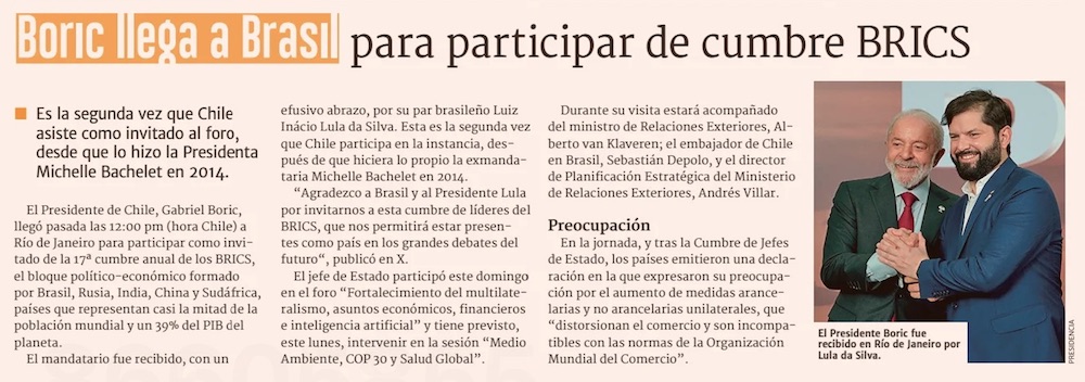 Presidente aboga por el respeto a los DD.HH. en cumbre BRICS de la que son parte Irán y Rusia - (El Mercurio de Santiago)