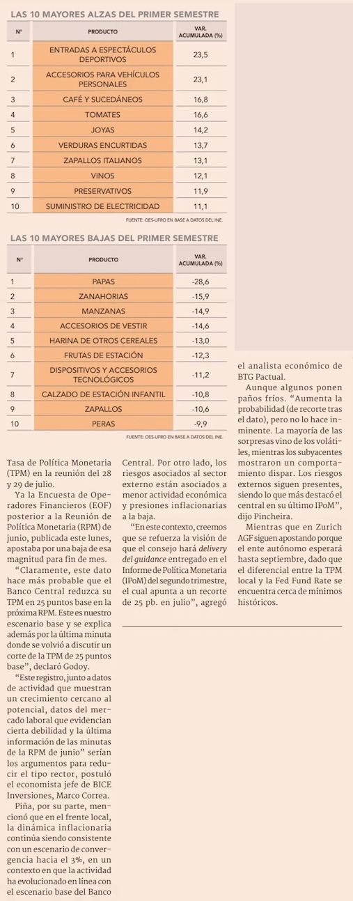 Seis claves tras sorpresivo IPC de junio, que registra mayor caída en un año y medio - (El Mercurio de Santiago)