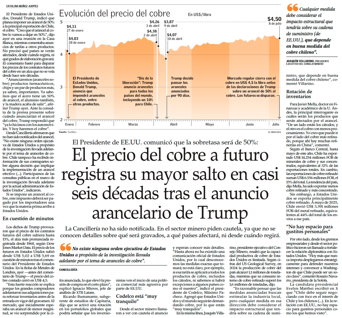 No solo cobre: tarifa de mayores envíos a EE.UU. le costaría US$ 1.800 millones a Chile - (El Mercurio de Santiago)