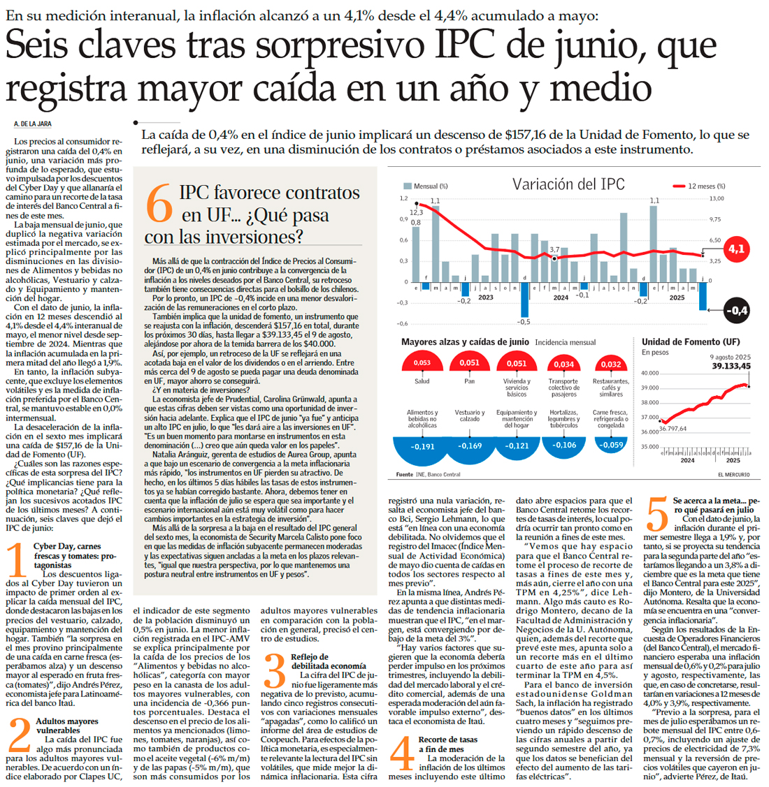 IPC negativo de junio refuerza visión de que Banco Central recortará tasa de interés este mes - (Pulso)