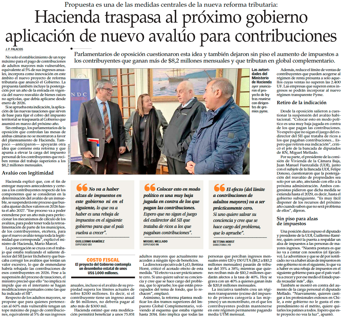Hacienda incluye en proyecto tributario la postergación por un año del reavalúo de propiedades y modifica el Fondo Común Municipal - (Pulso)